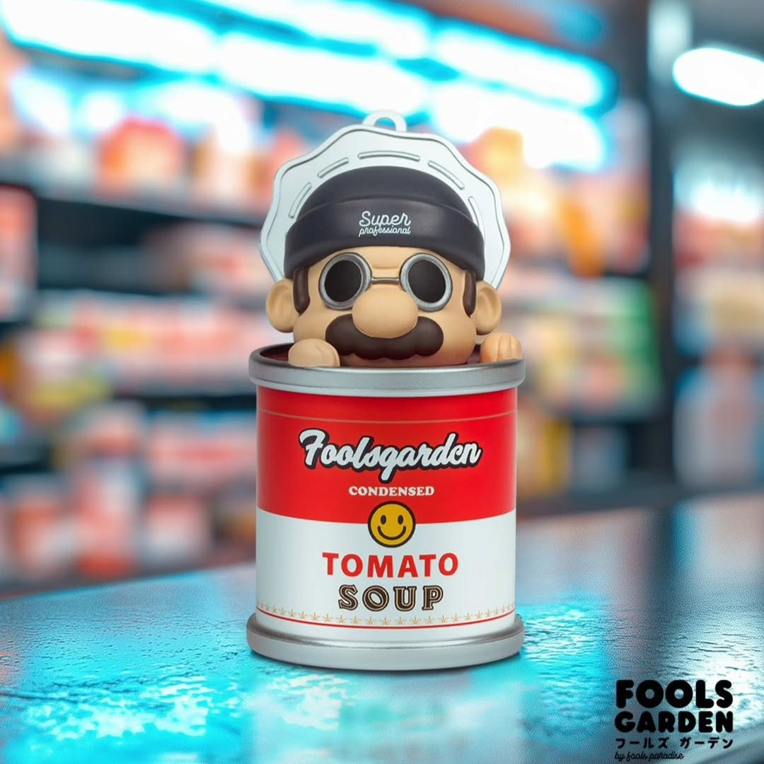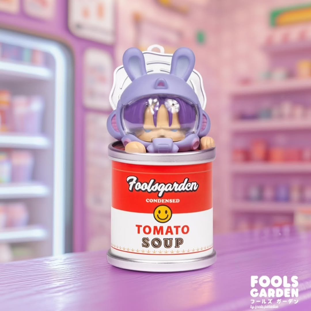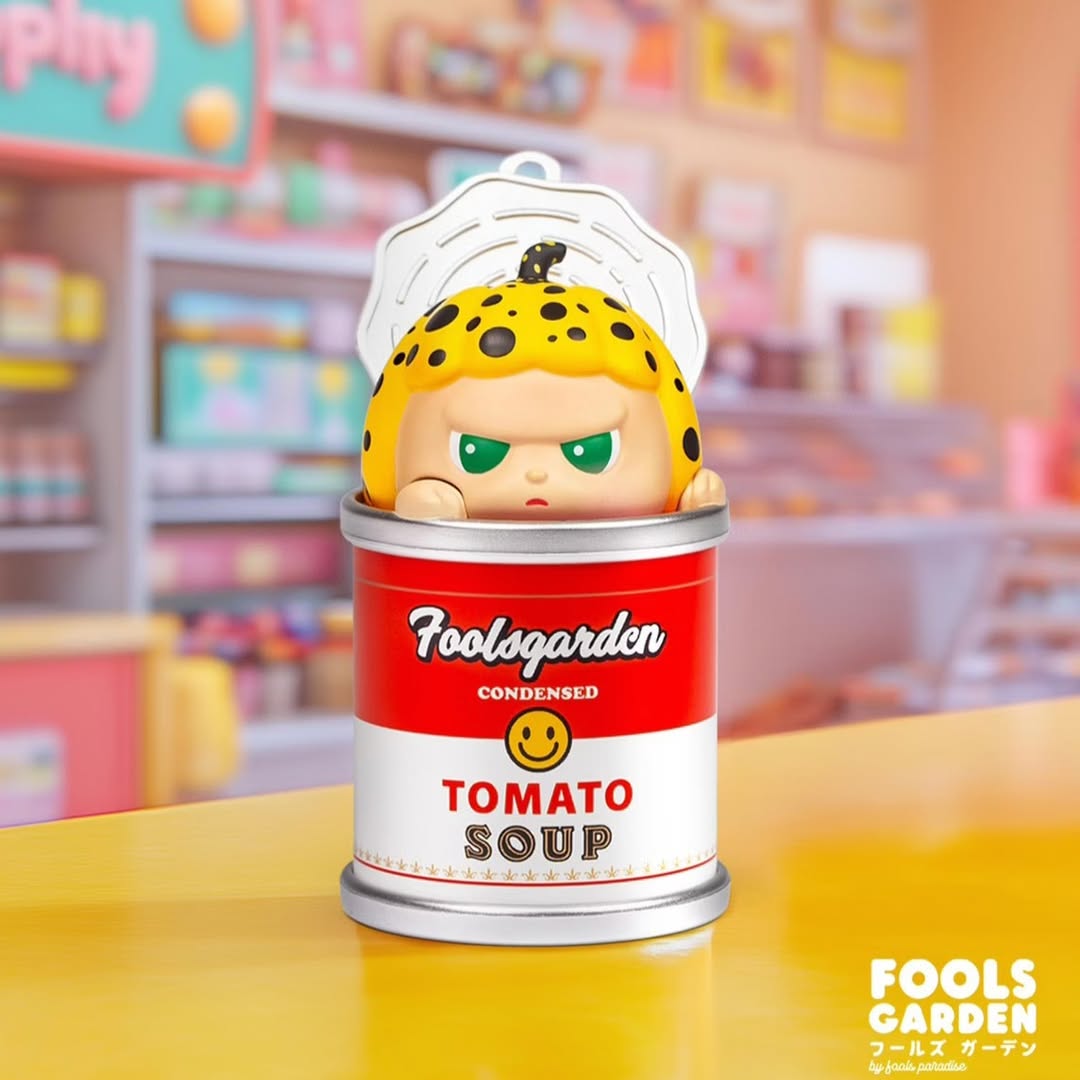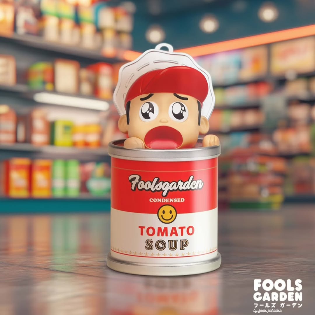 Ai bảo súp cà chua chỉ để ăn? Với Fools Paradise, nó còn để… chơi. Fools Garden: Tomato Soup – series blind box đầu tiên của hãng – biến lon súp tưởng chừng quen thuộc thành một blindbox đầy bất ngờ. Mỗi lần bật nắp, bạn chẳng biết mình sẽ rước về nhà nhân vật nào, nhưng có một điều chắc chắn là: càng mở, càng nghiện.