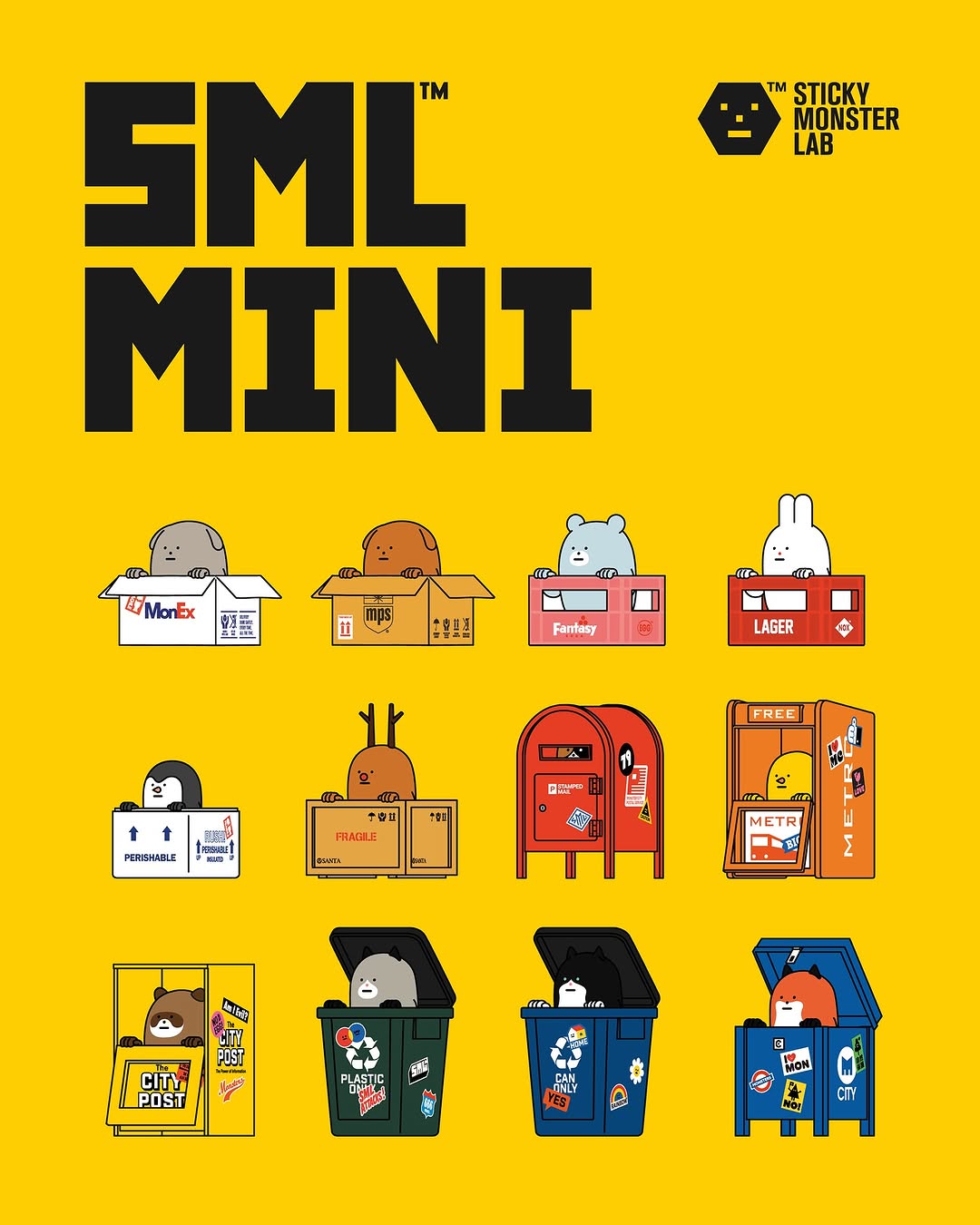 Trong mỗi blind box, thay vì chỉ đơn giản là một mô hình nhân vật, bạn sẽ tìm thấy một chiếc hộp đủ hình dạng, đủ kích cỡ, mô phỏng những "hộp đựng" quen thuộc trong đời sống hàng ngày như thùng thư, thùng giấy carton, thùng đựng chai lọ hay thậm chí cả thùng rác. Và ẩn chứa bên trong đó là những nhân vật quen thuộc của SML: Bearmon, Birdmon, Catmon, Dogmon,... Mỗi hộp mở ra không chỉ là một mô hình mà còn là một câu chuyện nhỏ, một sự kết hợp đầy sáng tạo giữa hình dáng của nhân vật và chiếc hộp đi kèm.